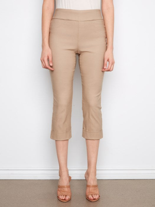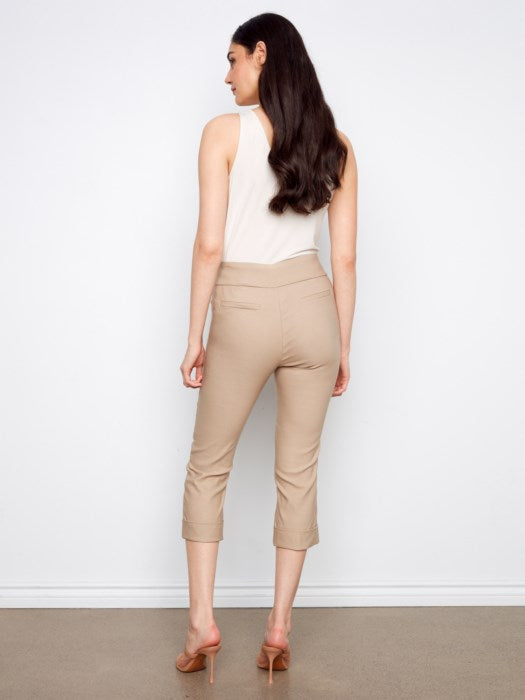 Solid Pull On Stretch Cropped Cuffed Pant