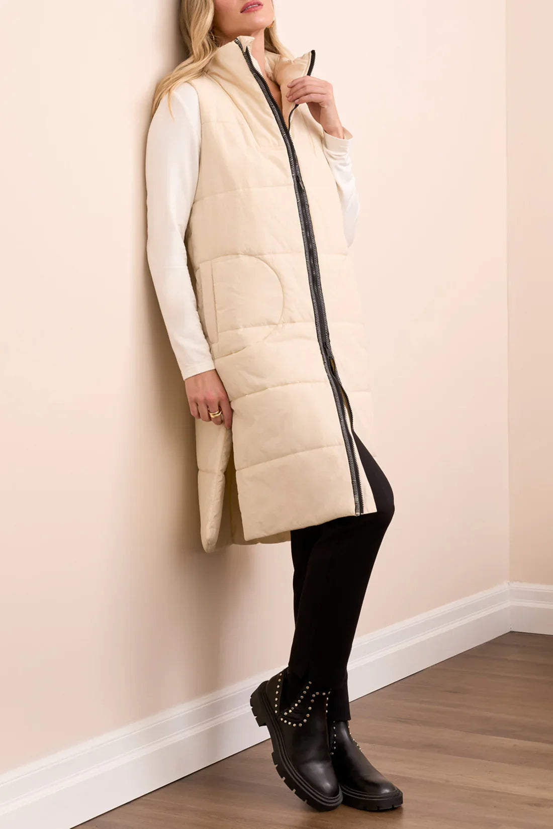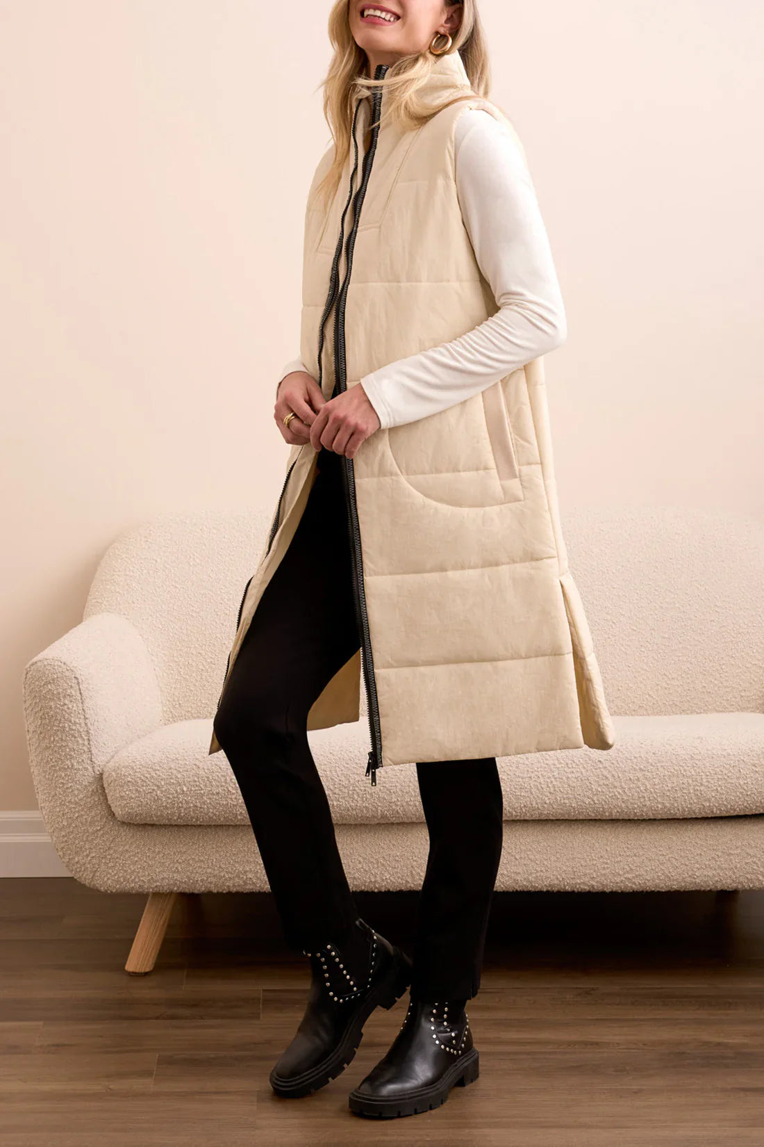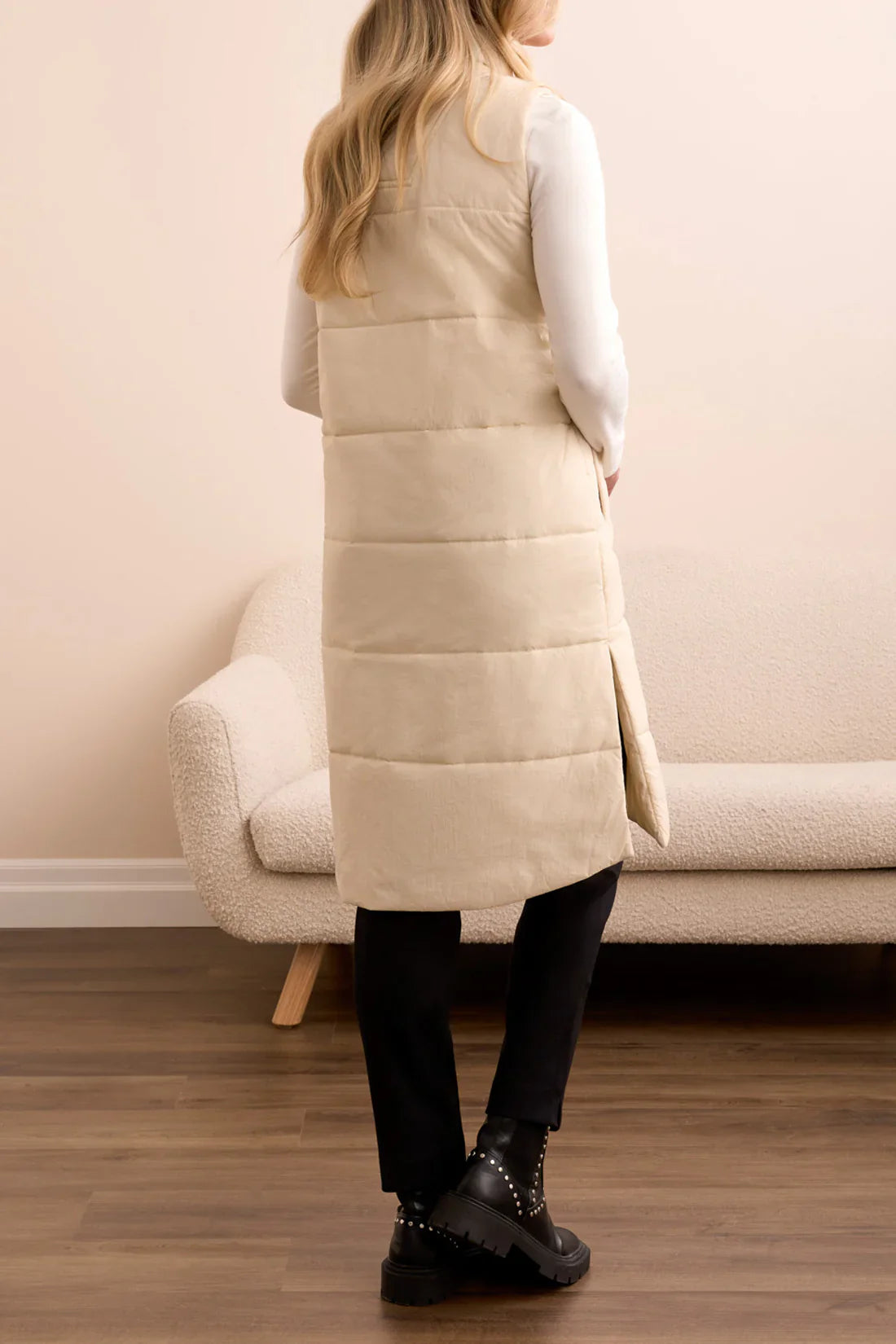Stay impeccably warm and stylish in this elegantly quilted vest, crafted with a longline silhouette for enhanced coverage and sophistication. Lightweight polyfill insulation ensures optimal comfort without bulk, while a streamlined zip-front closure and functional pockets offer a seamless blend of practicality and polished design.